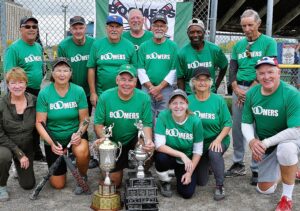 “Monday Ball” is a co-ed 50+ slo-pitch league that plays at Brewer Park Monday mornings at 10am and 11:30am. We play from the first Monday in May to the last Monday in September. Contact foxball@rogers.com